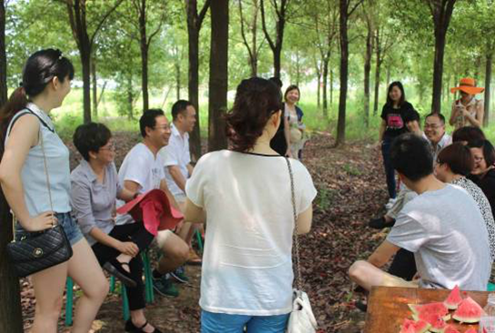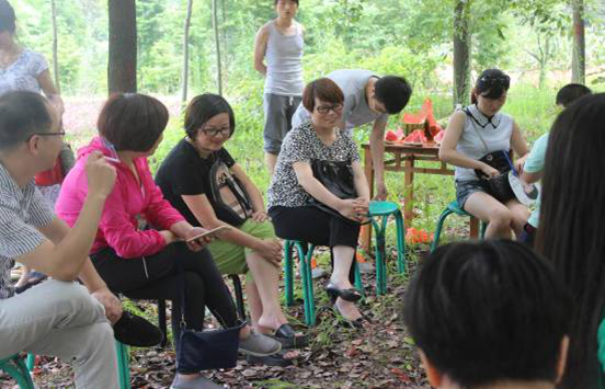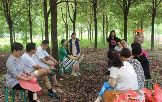 我們在小樹林里準(zhǔn)備了桌椅,低碳又環(huán)保,總監(jiān)們相互交流積極愉快