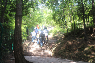9點15分,大部分客戶都到位了,金辰軟件KIS事業(yè)部負(fù)責(zé)人倪小紅集合大家做了活動說明,強調(diào)活動的意義,同時感謝客戶的積極參與,大體介紹了金蝶云之家和移動應(yīng)用,隨著一聲吹號聲,大家爭先恐后地向尖峰山山頂進(jìn)發(fā),每人手上綁著統(tǒng)一的紅絲帶在一路上顯得格外耀眼,工作人員舉著迎風(fēng)飄揚的金蝶標(biāo)志旗告訴大家是金蝶軟件在舉辦活動,很多爬山著豎著大拇指說金蝶軟件真不錯!,活動非常有意義!