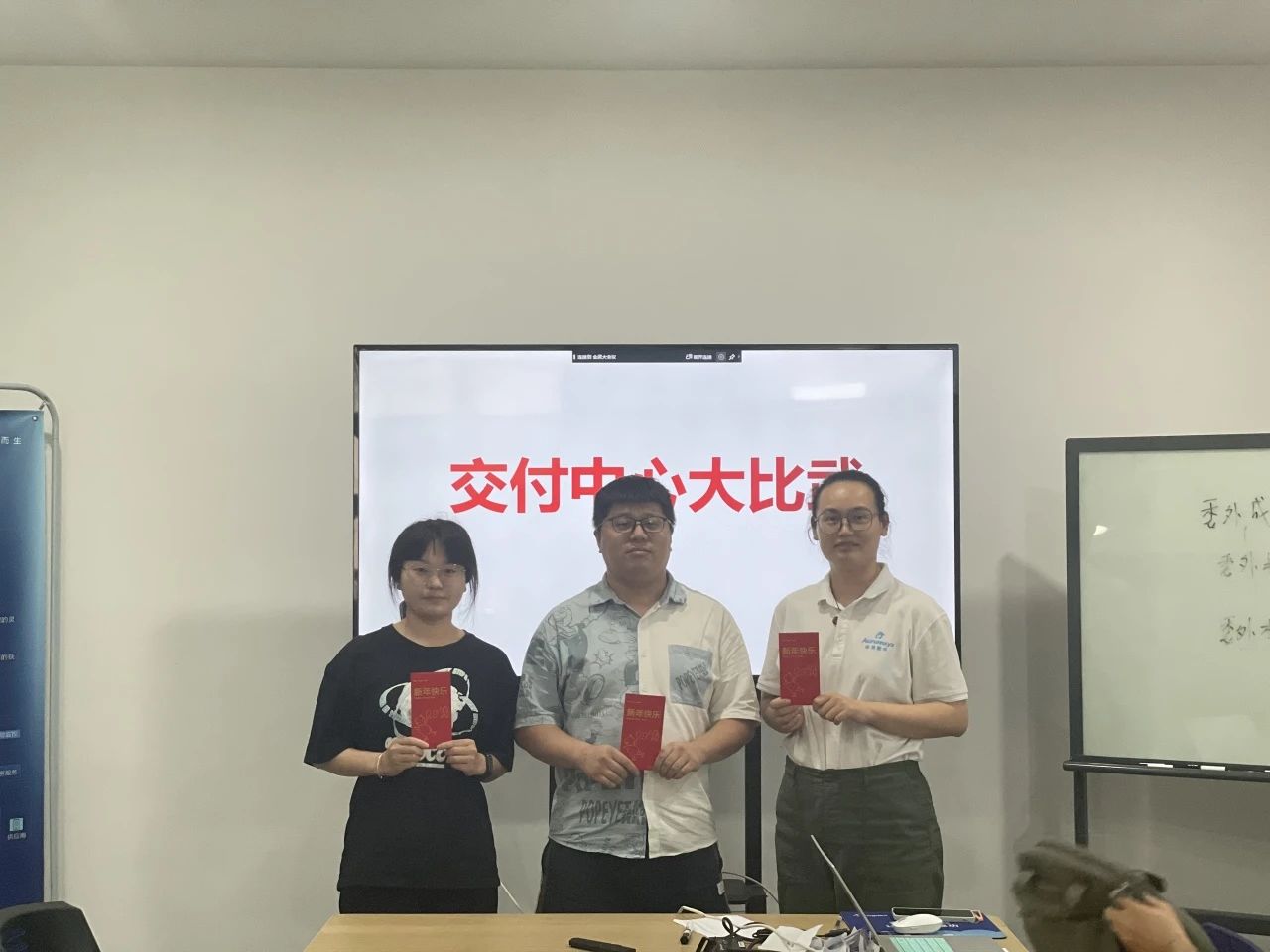 比武從上午8點一直持續(xù)到下午4點,經(jīng)過8小時的角逐,最終產(chǎn)生了得分最高的三名小伙伴,他們的技術(shù)過硬,積極向上,由我們的唐于老師給各位頒發(fā)紅包。交付中心的伙伴們,讓我們一起奔跑追上未來,共創(chuàng)交付中心更好的明天。
